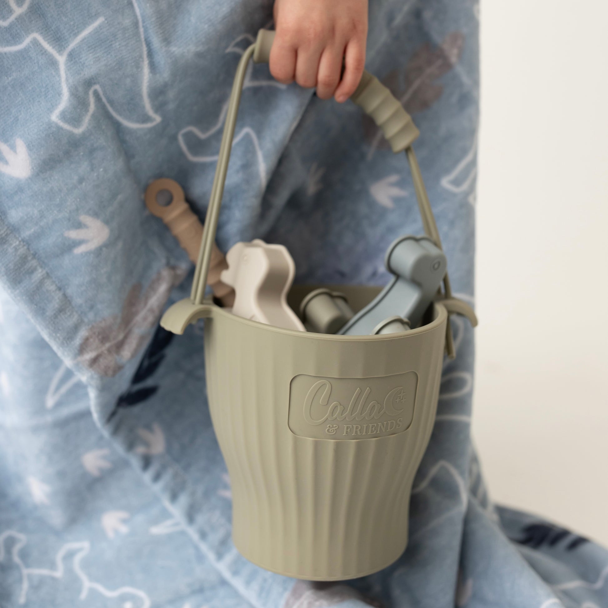Each set includes: 1 bucket, 1 small shovel, 4 sand molds & an organic cotton storage bag