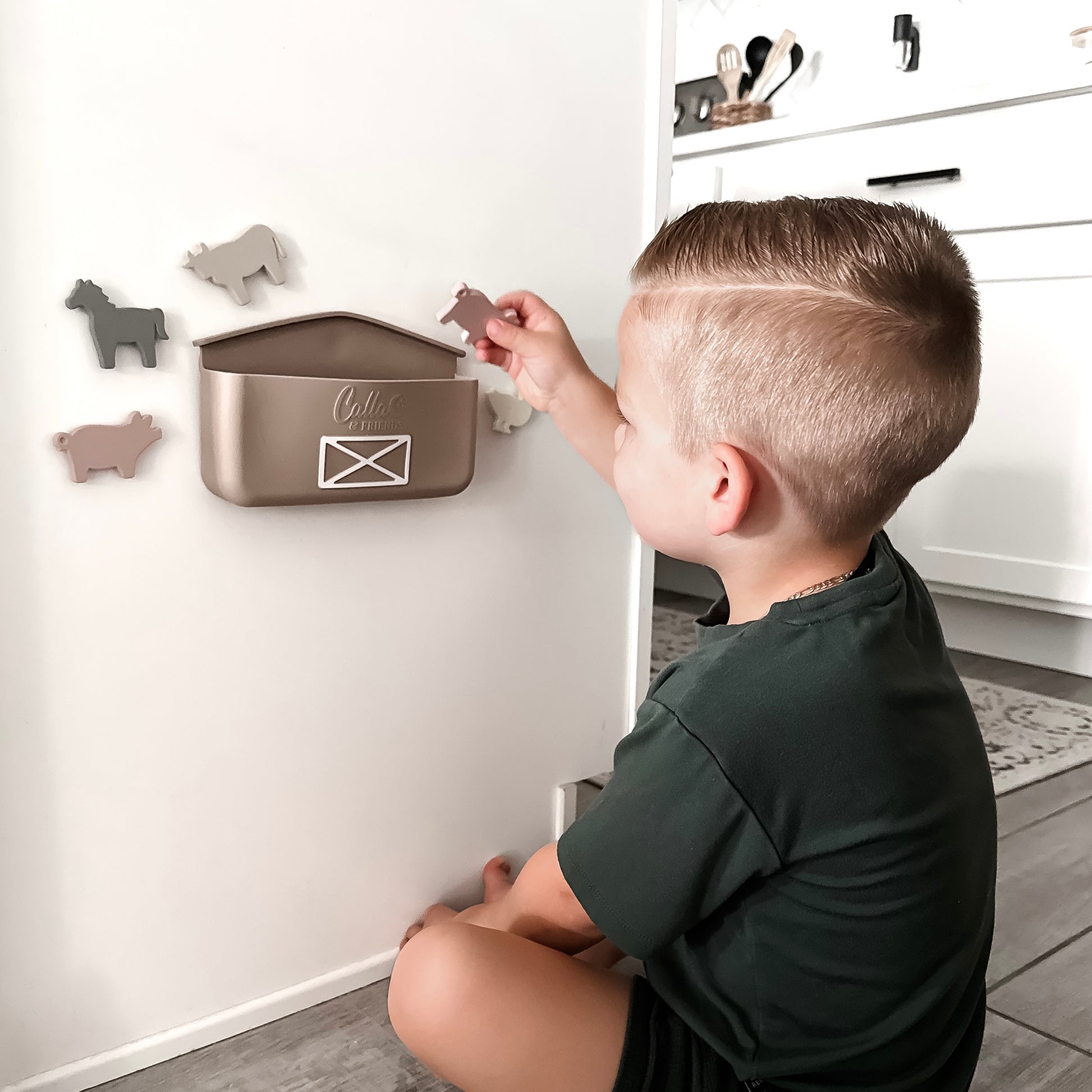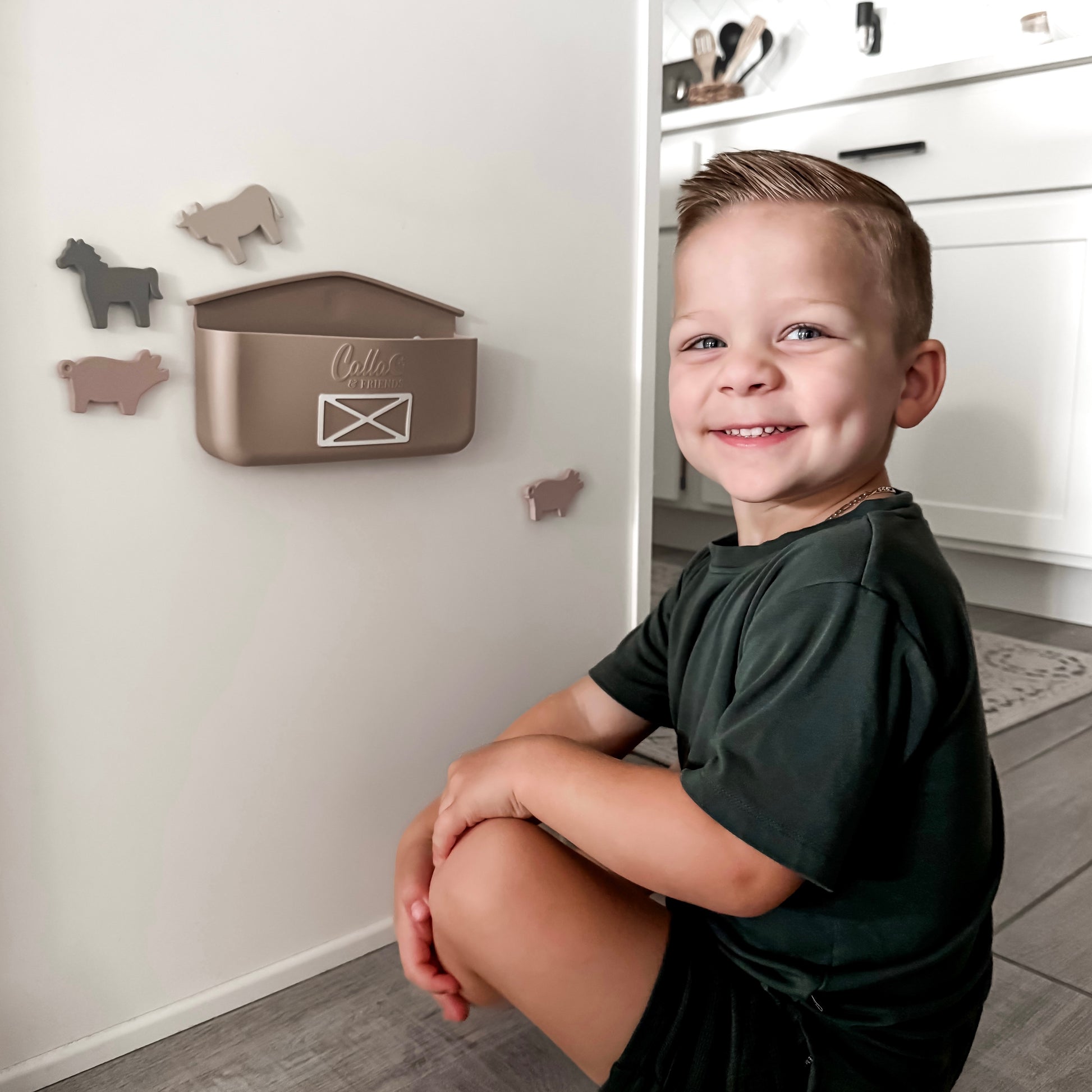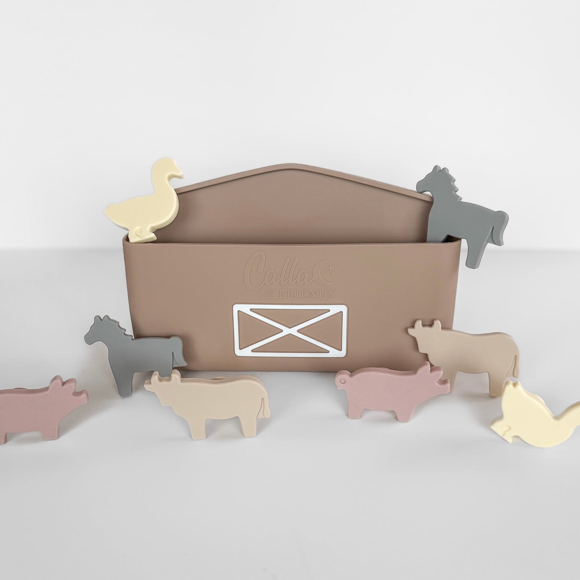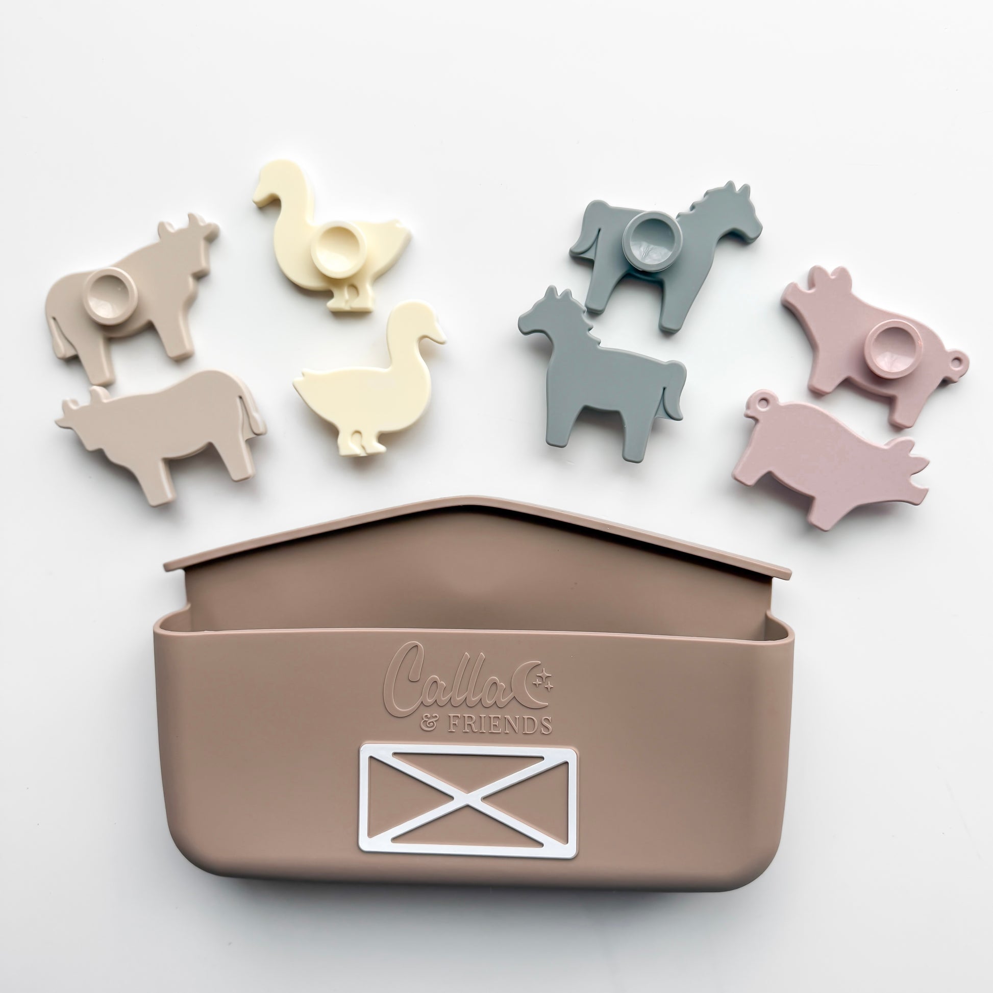 Bring farm fun to bath time, play time, and everything in between with our Farm Suction Toy Set! Designed to stick to tubs, fridges, windows, and more, these little farm friends spark imagination and keep curious hands busy. Made from non-toxic, food-grade silicone, they’re completely safe for little ones and dishwasher safe for easy cleanup. Each set comes packed in a reusable pouch so all your pieces stay together for play at home or on the go. Perfect for all your farm-loving kiddos!